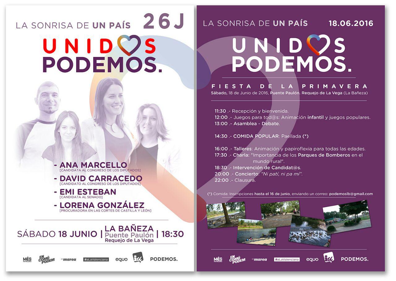 DetallesTe esperamos el sábado 18 en el Puente Paulón de Requejo, al lado de La Bañeza, para celebrar la Fiesta de la Primavera, para compartir #LaSonrisadeunPaís. Apúntate a la comida Porque #UnidosPodemos